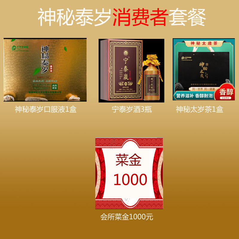 宁泰岁酒3瓶+神秘泰岁口服液1盒+神秘太岁茶1盒+神秘太岁会所菜金1000元()